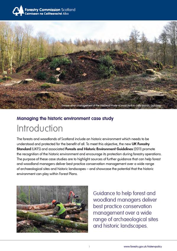 This resource guide has been designed as a route map to the information and advice available to forest and woodland managers in regard to the historic environment, primarily in support of the UK Forestry Standard (UKFS) Guidelines on Forests and Historic Environment.