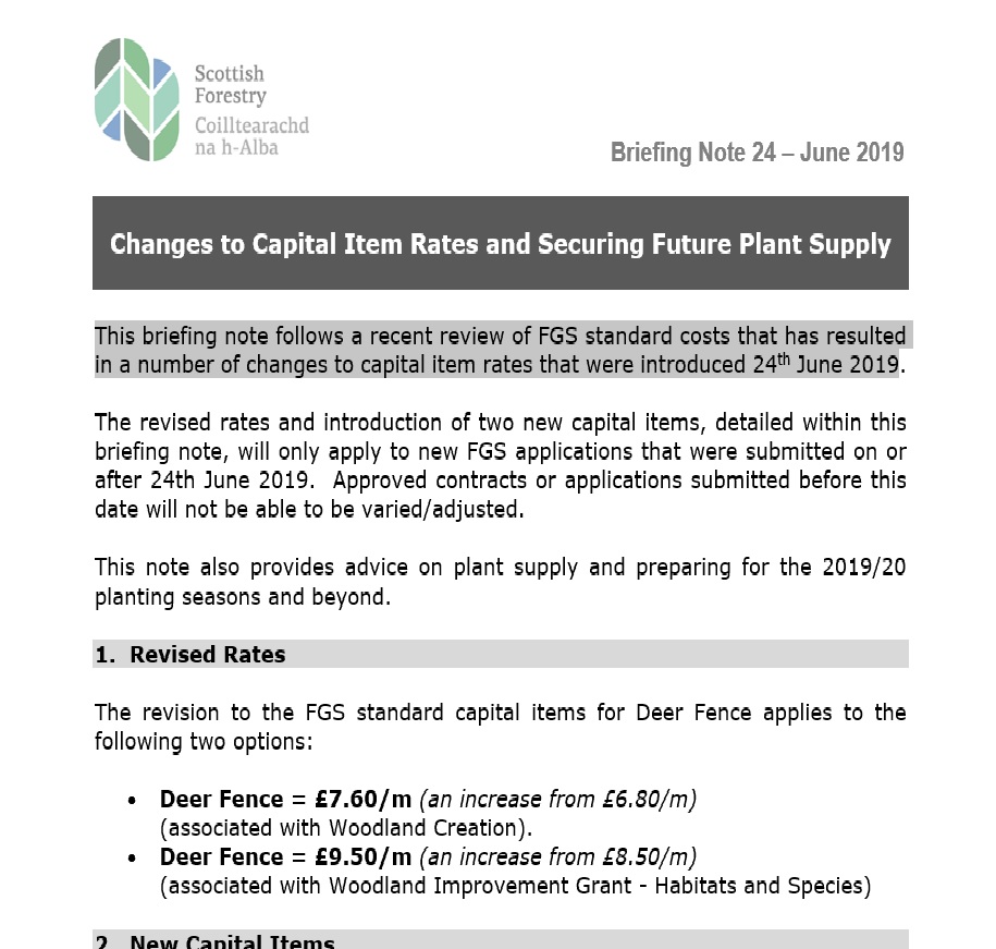 The revised rates and introduction of two new capital items, detailed within this briefing note, will only apply to new FGS applications that were submitted on or after 24th June 2019. Approved contracts or applications submitted before this date will not be able to be varied/adjusted.