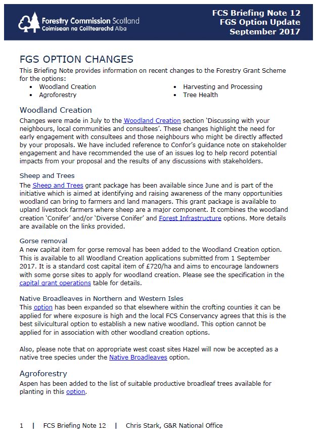 This briefing note provides information on recent changes to the Forestry Grant Scheme.