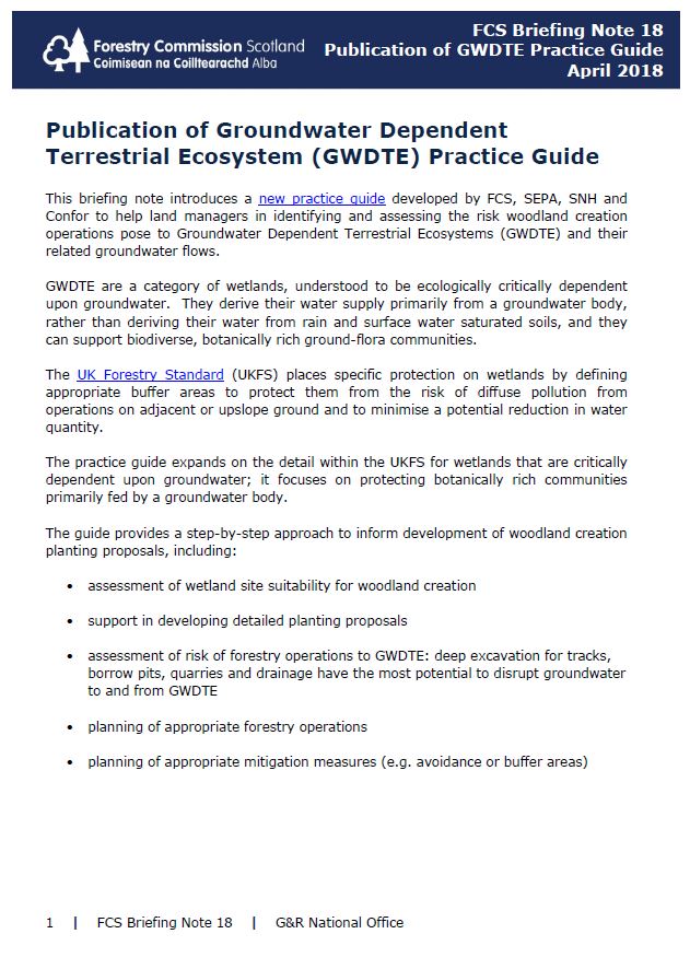 This briefing note introduces a new Groundwater Dependent Terrestrial Ecosystems (GWDTE) practice guide.