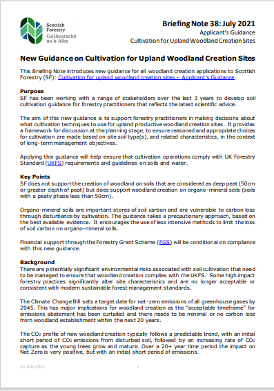 Briefing Note 38: New Guidance on Cultivation for Upland Woodland Creation Sites