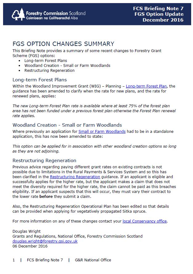 This Briefing Note provides a summary of some recent changes to Forestry Grant Scheme (FGS) options.