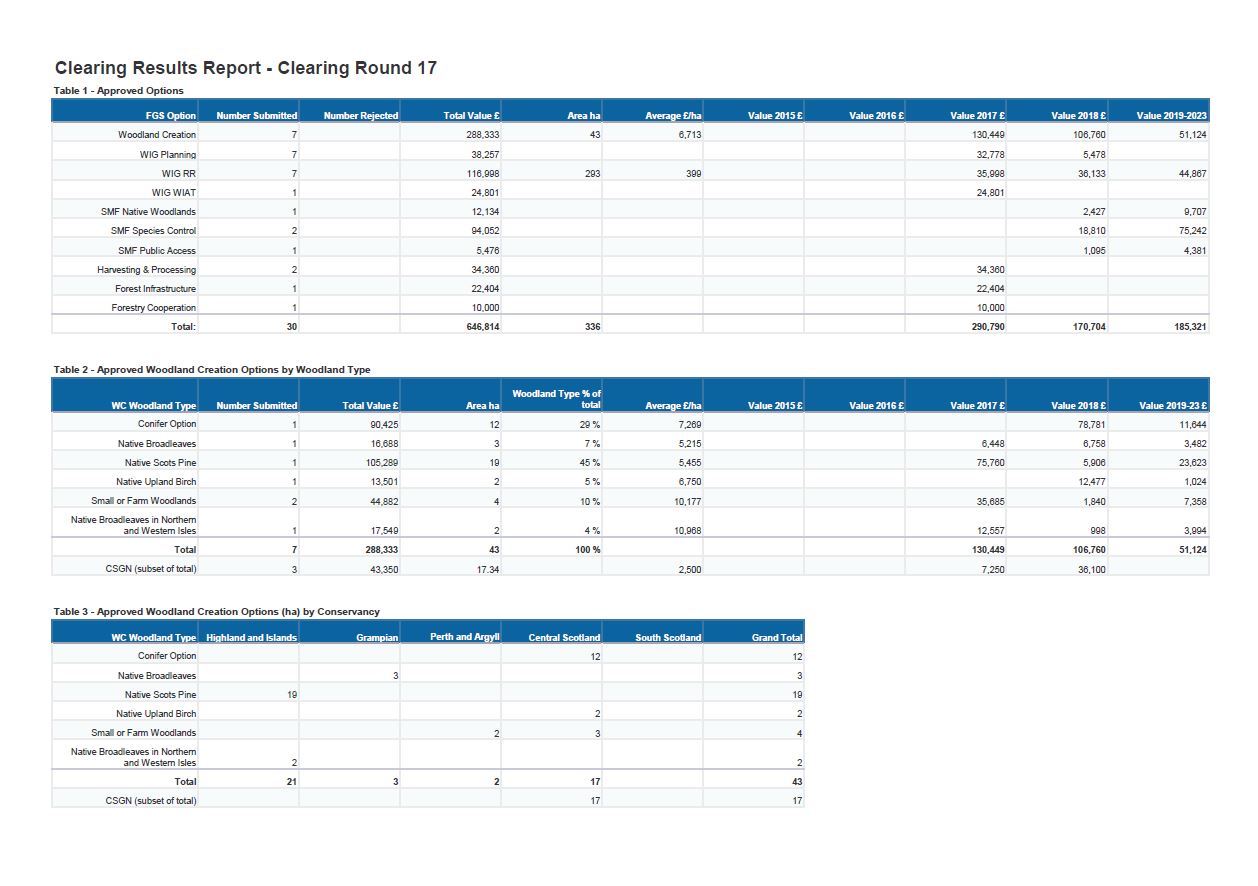 Clearing round results for April 2017.