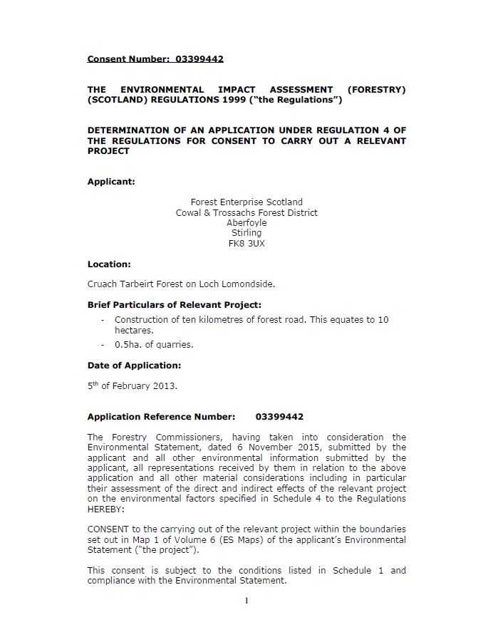 Cruach Tarbeirt Consent Decision Schedule 1