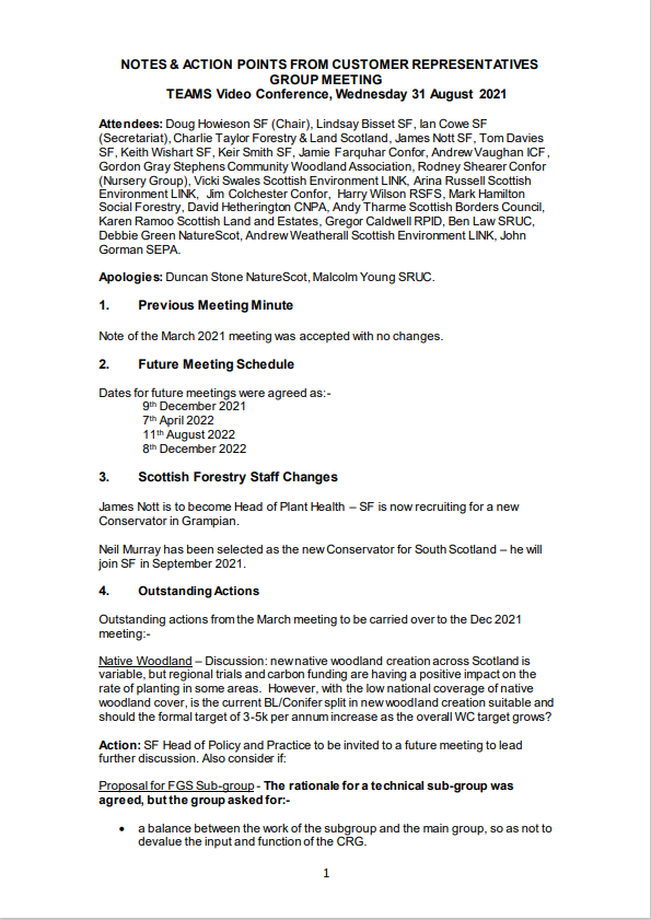 Customer Representative Group - Notes and action points from meeting of 31 August 2021