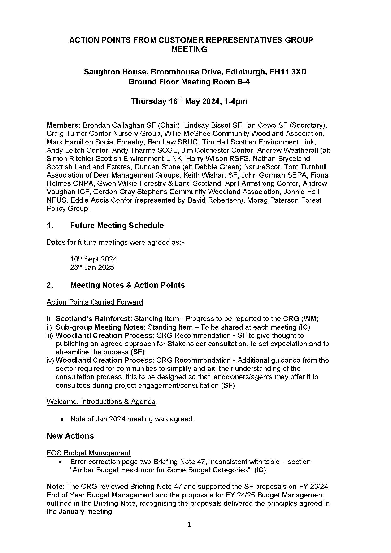 Action points from the Customer Representatives Group meeting on 16 May 2024.