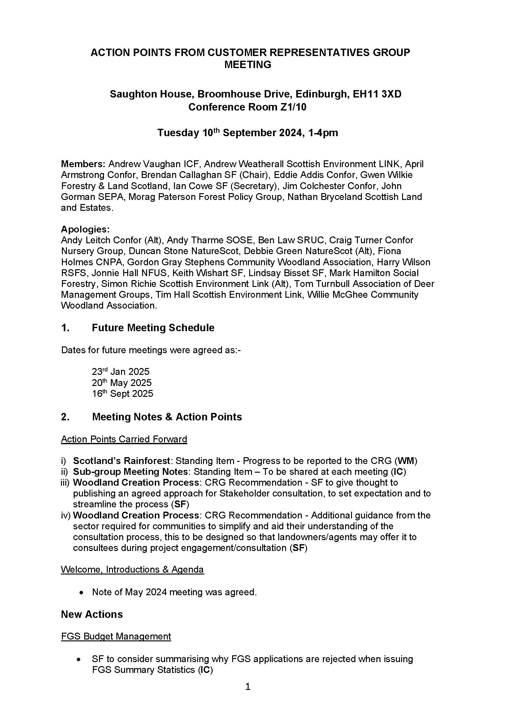 Action points from the Customer Representatives Group meeting on 10 September 2024.