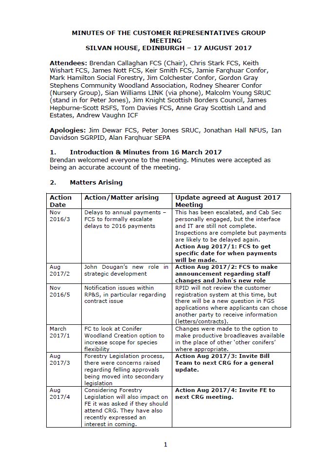 Minutes of the customer representatives group meeting on the 17th of August 2017.