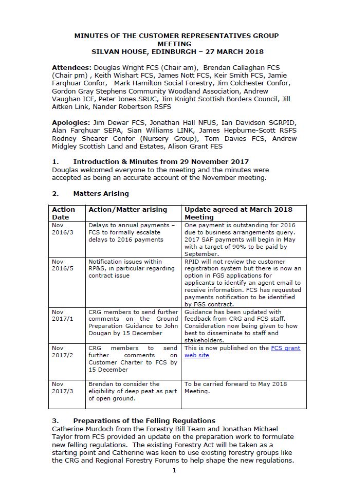 Customer Representatives Group Meeting Minutes 27 March 2018