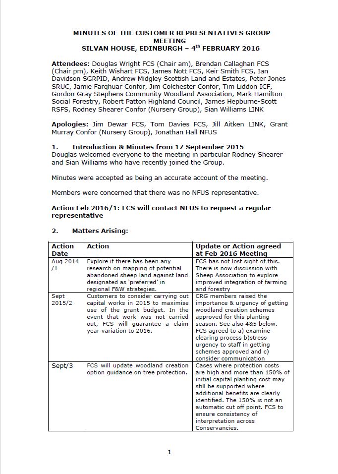 Minutes of the customer representatives group meeting on the 4th of February 2016.