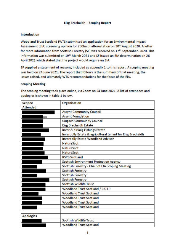 Scoping Report Minutes & Appendices for proposed afforestation at Eisg Brachaidh Estate, by Ullapool.
