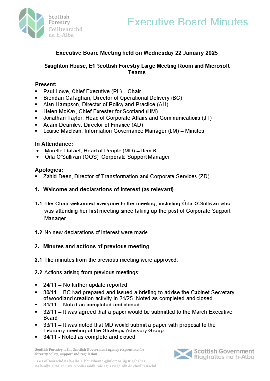 Minutes of the Senior Executive Team meeting 22 January 2025.