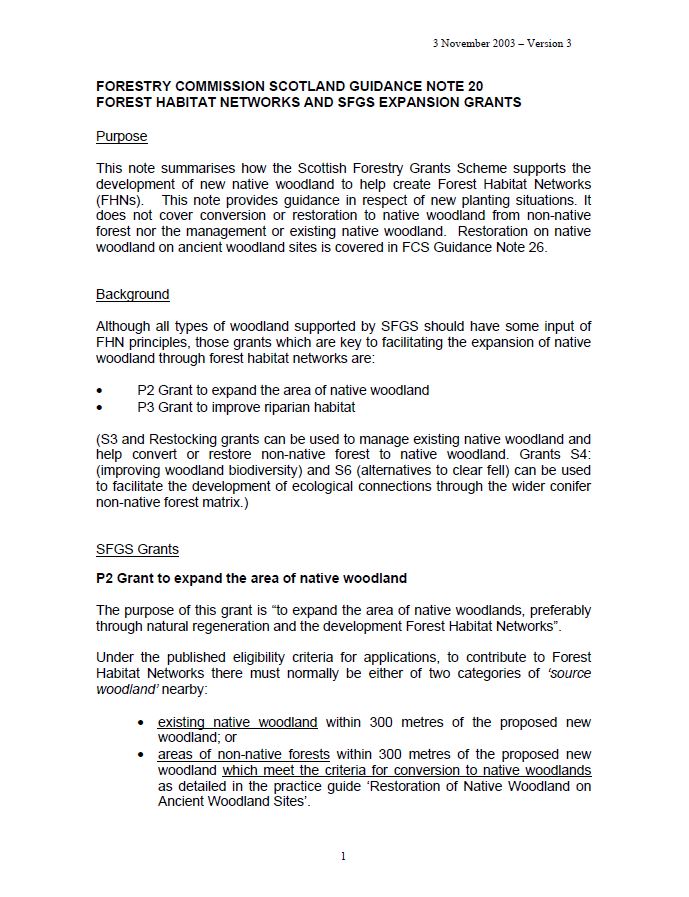 This note summarises how the Scottish Forestry Grants Scheme supports the development of new native woodland to help create Forest Habitat Networks.