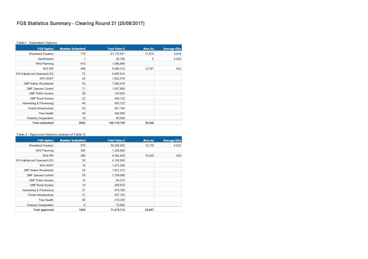 Overview of Forestry Grant Scheme Statistics for August 2017.
