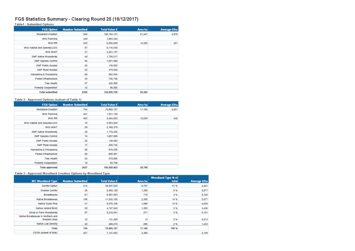 Overview of Forestry Grant Scheme Statistics for December 2017.