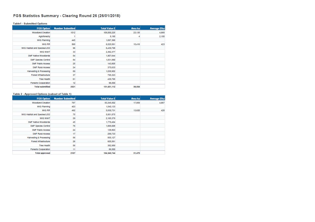 Overview of Forestry Grant Scheme Statistics for January 2018.