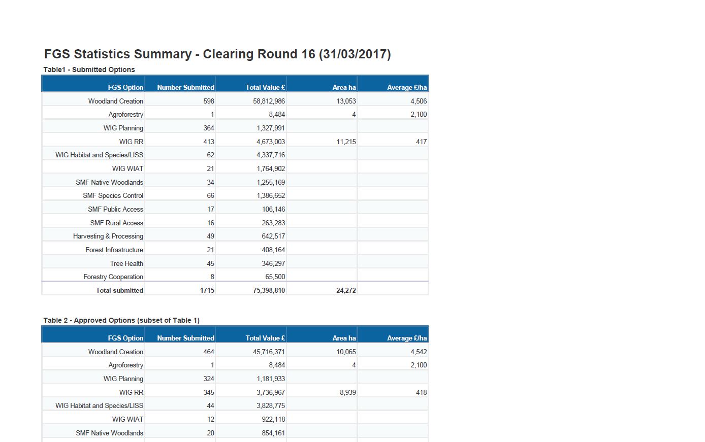 Forestry Grant Scheme Statistics March 2017