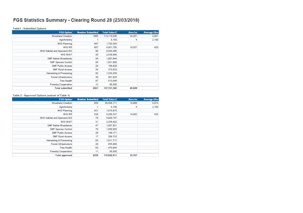 Overview of Forestry Grant Scheme Statistics for March 2018.
