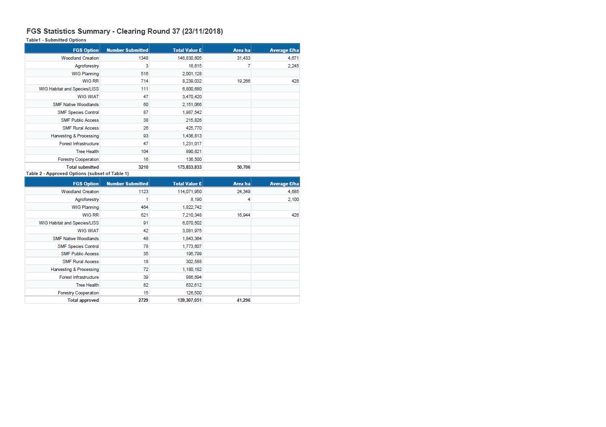 Overview of Forestry Grant Scheme Statistics for November 2018.