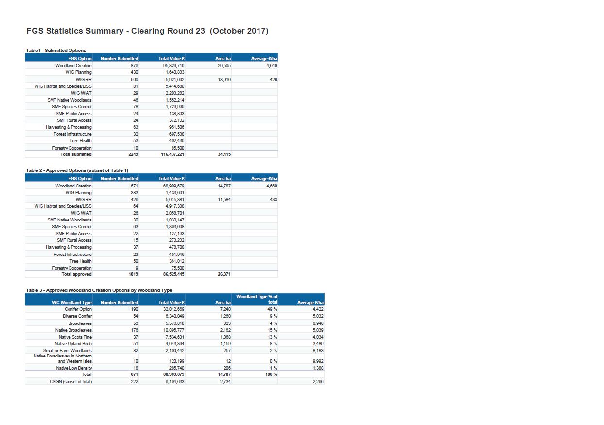 Overview of Forestry Grant Scheme Statistics for October 2017.