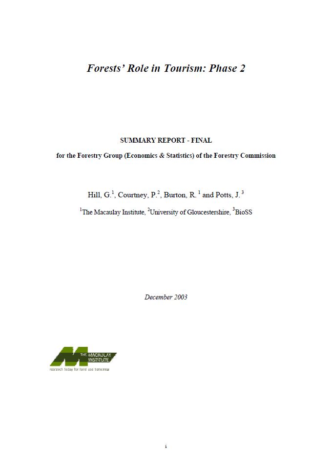 Ths report summarises the Forests' Role in Tourism Phase 1 and Phase 2 reports.
