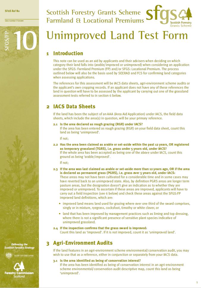 Scottish Forestry Grant Scheme Farmland Premiumun unimproved land test form.