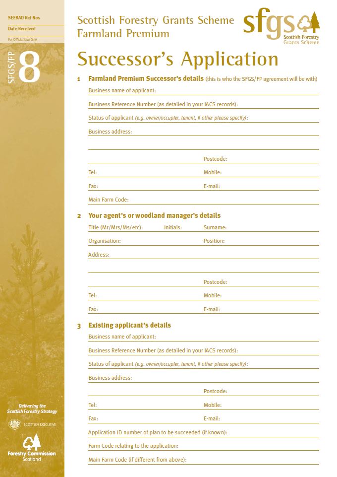 Scottish Forestry Grant Scheme Farmland Premium successor's application form.