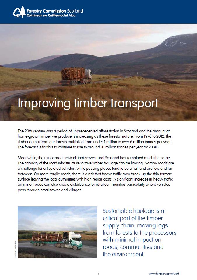 Meanwhile, the minor road network that serves rural Scotland has remained much the same. The capacity of the road infrastructure to take timber haulage can be limiting. Narrow roads are a challenge for articulated vehicles, while passing places tend to be small and are few and far between. On more fragile roads, there is a risk that heavy traffic may break-up the thin tarmac surface leaving the local authorities with high repair costs. A significant increase in heavy traffic on minor roads can also create disturbance for rural communities particularly where vehicles pass through small towns and villages.