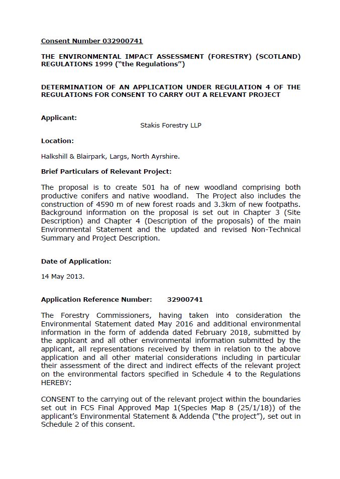 Consent decision schedule for the Halkshill and Blair Park Environmental Impact Assessment. Part one of two.