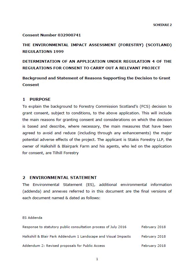Consent decision schedule for the Halkshill and Blair Park Environmental Impact Assessment. Part two of two.