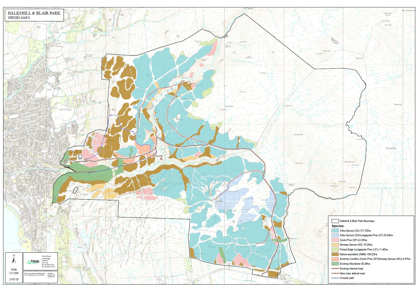 The owner’s objective is to establish a productive woodland, with the right species on the right soil, to maximise timber production and sequester carbon. Within the total area of some 1,396.8 ha, 501.5 (or 36%) is proposed for afforestation with 865.37 ha (62%) retained as open ground.