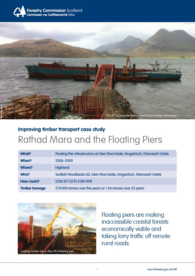 Floating piers are making inaccessible coastal forests economically viable and taking lorry traffic off remote rural roads. This floating pier infrastructure at Glen Etive Estate, Kingairloch and Eilanreach Estate is projected to carry 1.1m tonnes of timber over 25 years.
