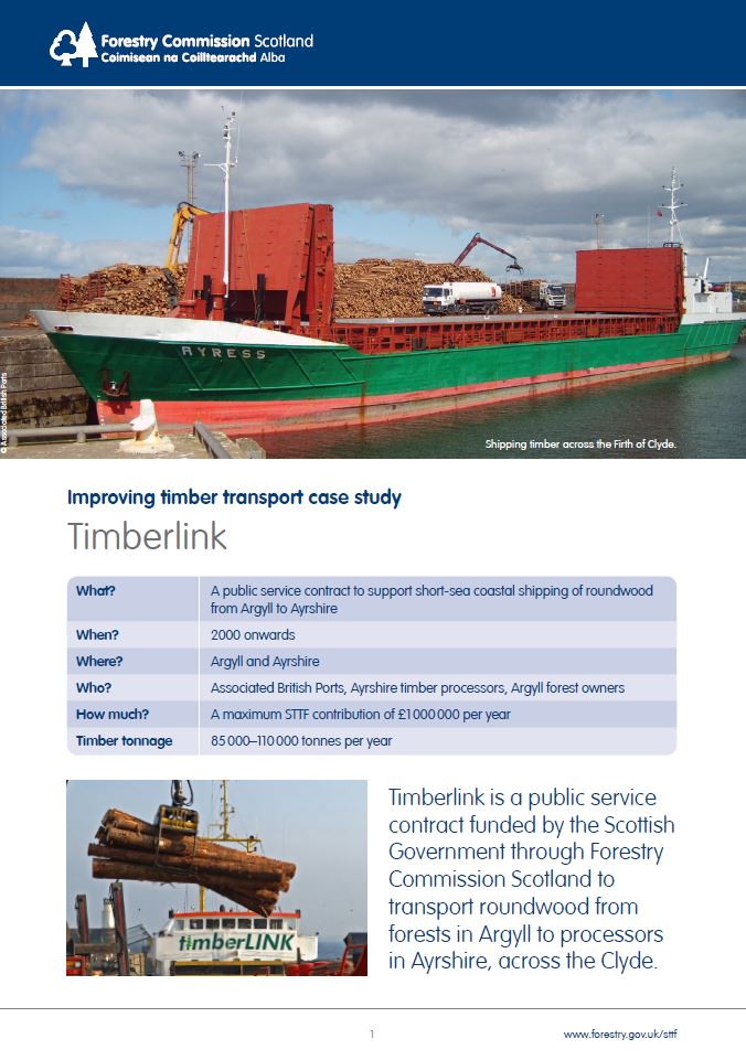 Timberlink is a public service contract funded by the Scottish Government through Forestry Commission Scotland (now Scottish Forestry) to transport roundwood from forests in Argyll to processors in Ayrshire, across the Clyde.