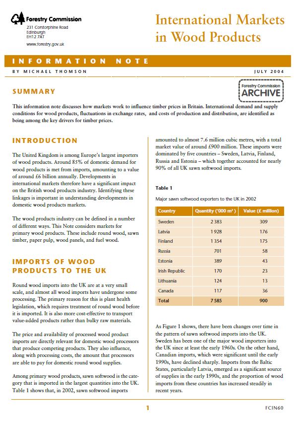 This information note discusses how markets work to influence timber prices in Britain.