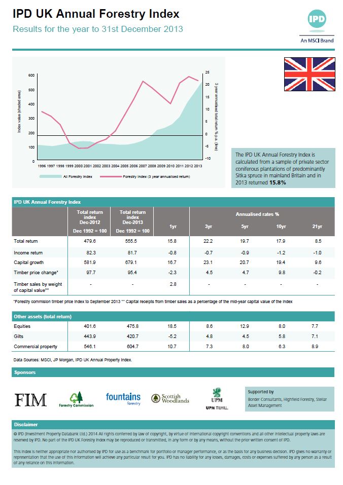 The IPD Forestry Index is calculated from a sample of private sector coniferous plantations of predominantly Sitka spruce in mainland Britain.