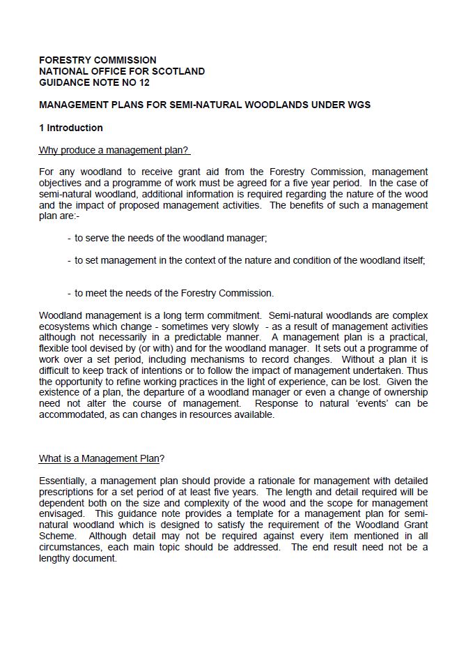 For any woodland to receive grant aid from Scottish Forestry, management objectives and a programme of work must be agreed. In the case of semi-natural woodland, additional information is required regarding the nature of the wood and the impact of proposed management activities.