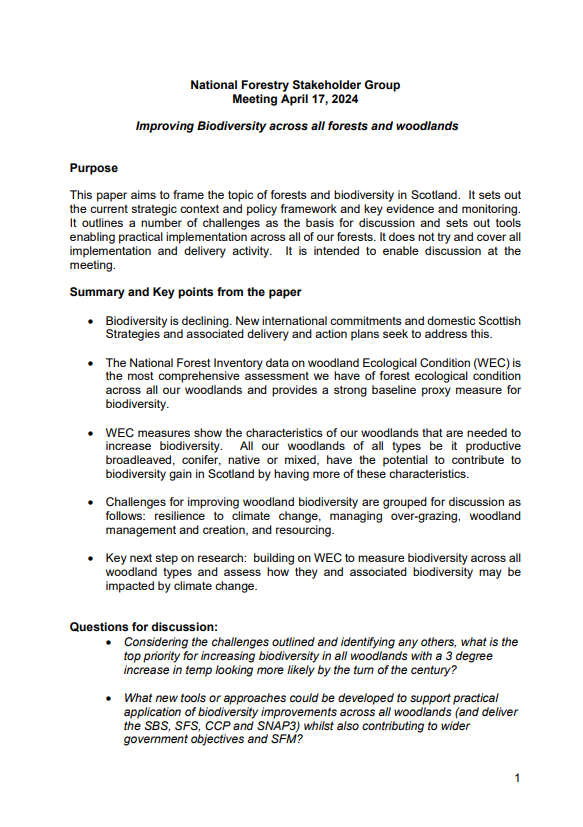 This paper - from April 17 2024 - aims to frame the topic of forests and biodiversity in Scotland. The paper: