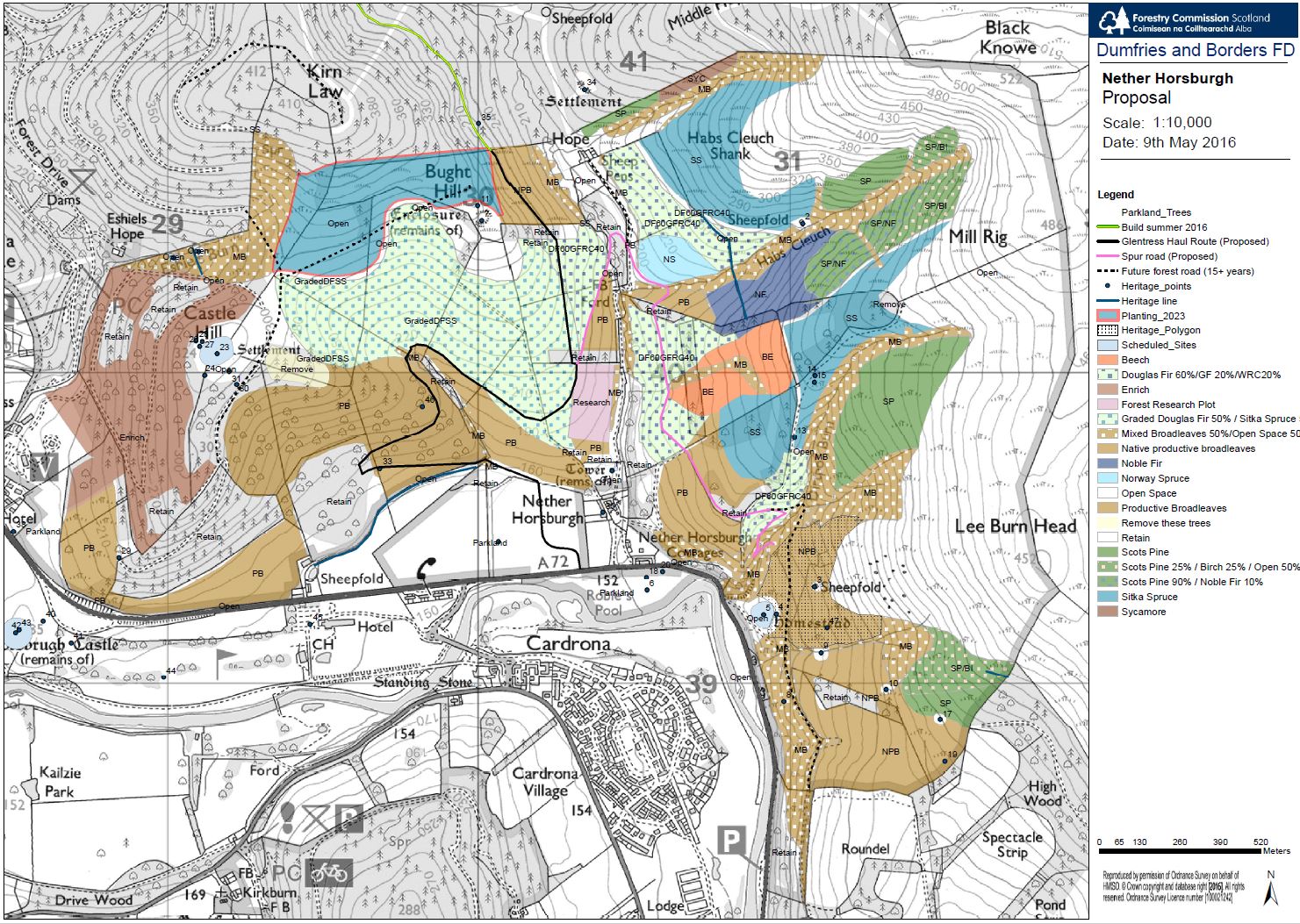 This environmental statement (ES) has been prepared to inform a proposal for afforestation and road building on Nether Horsburgh Estate, some 3km east of Peebles, Scottish Borders.