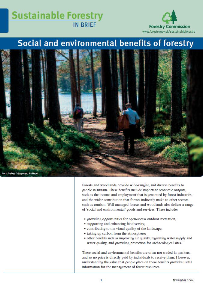 Forests and woodlands provide a wide range of benefits to people in the UK. A major study on these benefits was published in 2003. This factsheet summarises the main findings and benefits, which include: