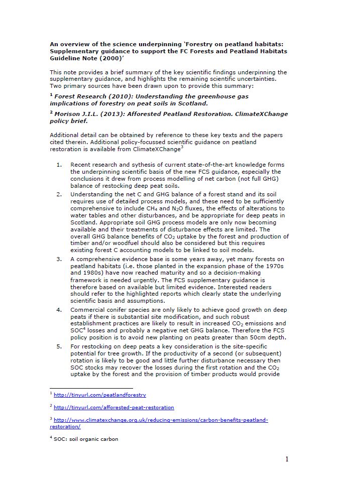 • Forest Research (2010): Understanding the greenhouse gas implications of forestry on peat soils in Scotland