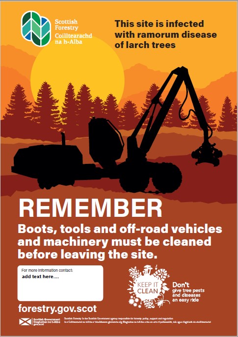 Phytophthora ramorum disease biosecurity poster for forestry workers