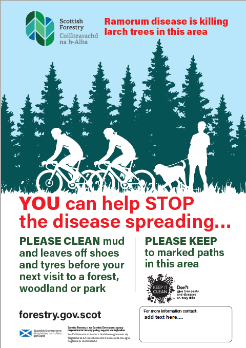 Biosecurity signage for use on or near sites served with a Statutory Plant Health Notice for Phytophthora ramorum disease on larch (A3)