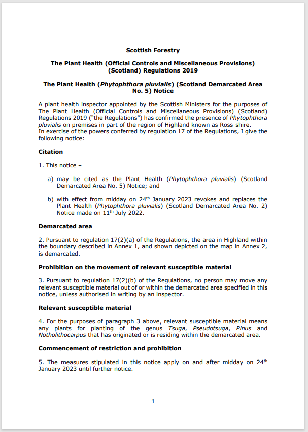 The Plant Health (Phytophthora pluvialis) (Scotland Demarcated Area No. 5) Notice