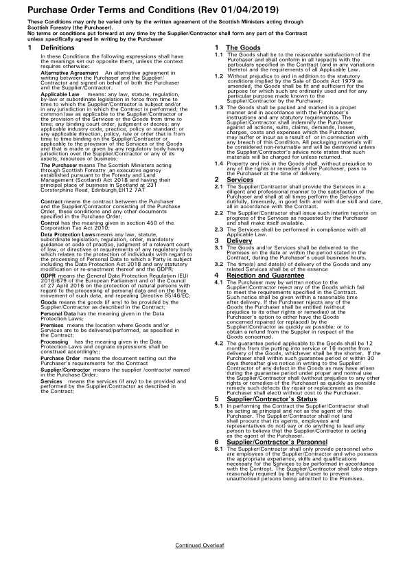 These Conditions may only be varied only by the written agreement of the Scottish Ministers acting through Scottish Forestry (the Purchaser).