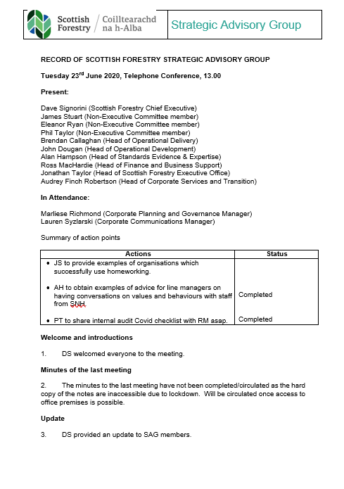 Scottish Forestry Strategic Advisory Group (SAG) minutes for 23 June 2020.