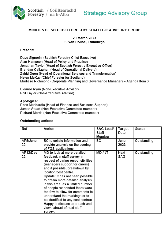 Scottish Forestry Strategic Advisory Group (SAG) minutes for 29 March 2023.