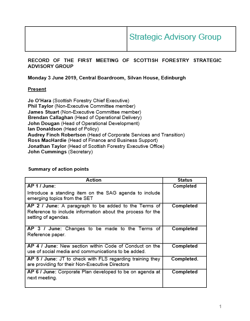 Scottish Forestry Strategic Advisory Group (SAG) minutes for 3 June 2019.