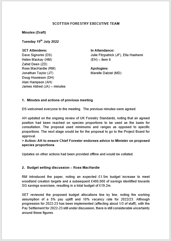 The minutes of the Senior Executive Team (SET) for 19 July 2022. Matters discussed: