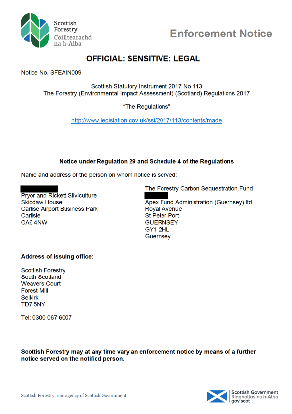 Scottish Forestry has issued an enforcement notice stopping all works in relation to an EIA forestry project, namely proposed woodland creation at Stobo Estate.