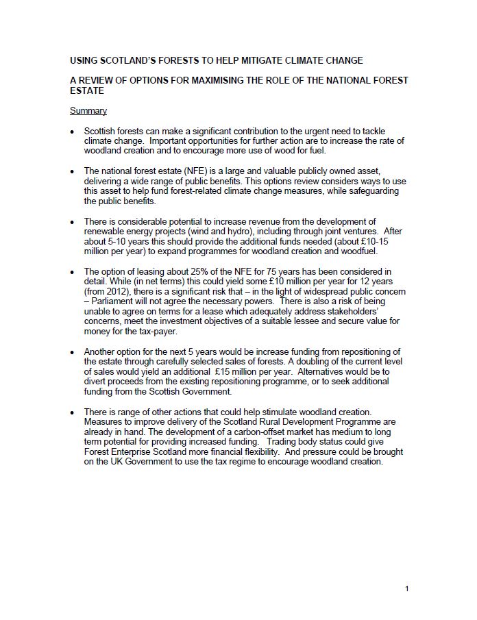 The national forest estate (NFE) is a large and valuable publicly owned asset, delivering a wide range of public benefits. This options review considers ways to use this asset to help fund forest-related climate change measures, while safeguarding the public benefits.